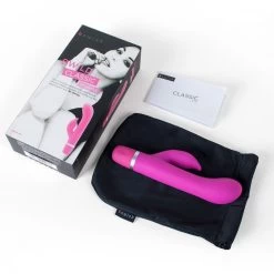 B Swish brings us this gorgeous, delightfully manageable 5-function silicone rabbit massager with 2 individual motors, ready for waterproof fun. With a slim tilted G-Spot loving shaft and a smooth but precise tickler, the Bwild Classic Marine will satisfy the solo pleasure seeker, though it’s certainly suited to couple-geared scenarios, too! Be adventures, be daring.