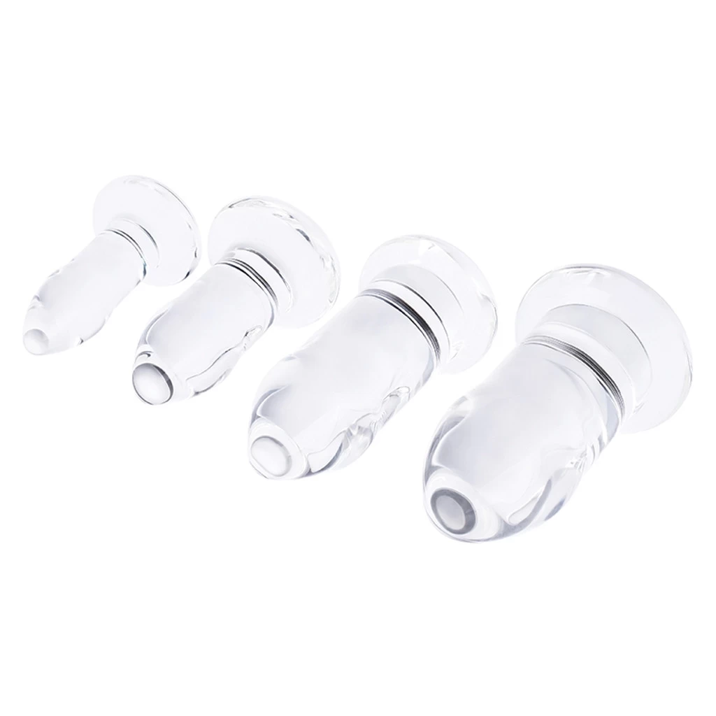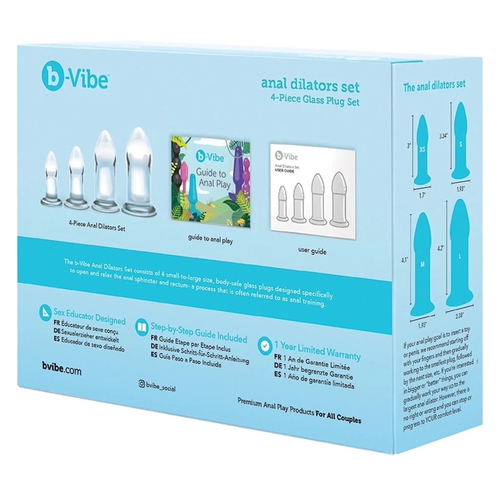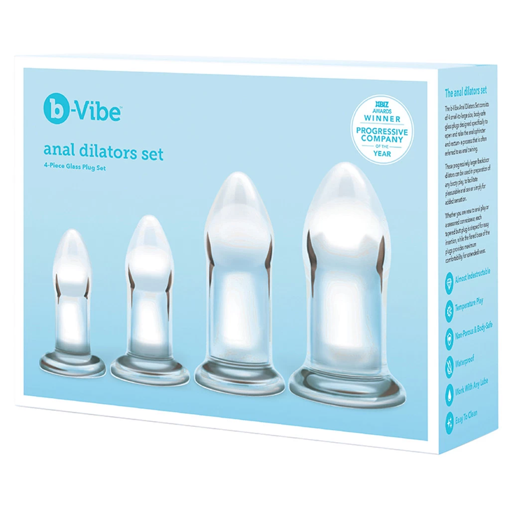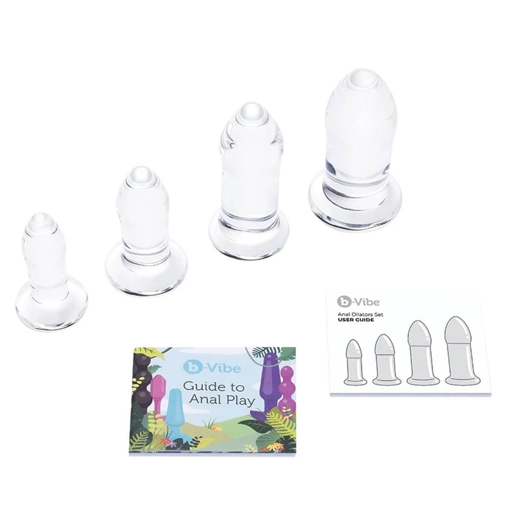 Dial up your derrière with the new b-Vibe Glass Anal Dilators Set! The Glass Anal Dilators Set consists of 4 small-to-large size, body-safe glass anal plugs explicitly designed to open up and relax the anal sphincter and rectum- a process known as Anal Training. Crafted from special borosilicate glass that’s 100 percent shatterproof, each tapered plug offers easy insertion, while the flared base provides maximum comfort for extended we