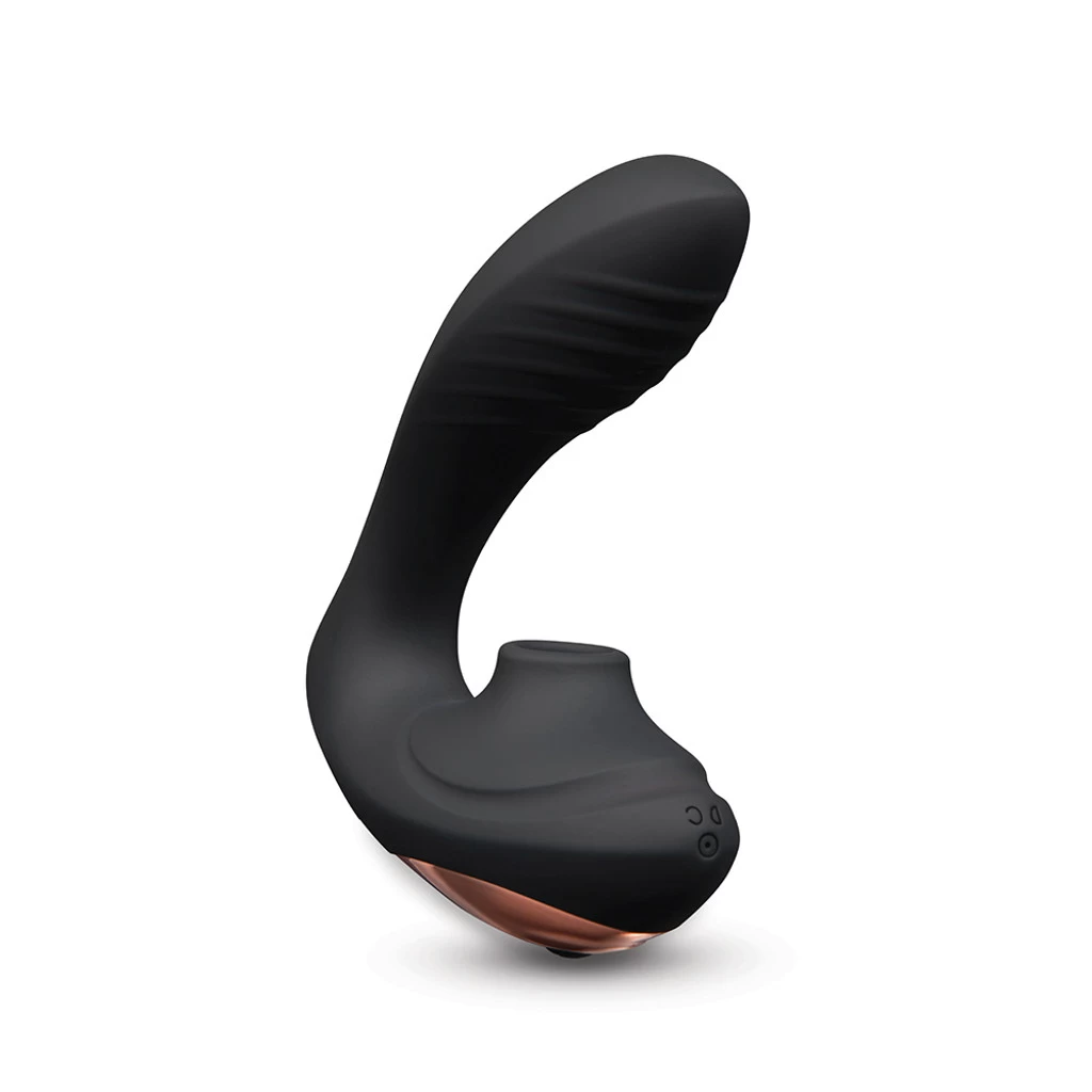 Indulge in luxurious pleasure with The Royal Embrace Dual Stimulator. Thanks to its flexible design and high-quality silicone, this massager provides simultaneous G-spot and clitoral stimulation while the 10 internal vibration and 10 external intensity levels give you an amazing range of sensations. Enjoy the gentle clit-sucking air pulse sensation and customize your perfect combination of pleasure. Its rechargeable motor provides long-lasting enjoyment and a smooth, easy-to-clean surface. Get ready for a royal experience!