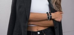 Wear them stacked together on your wrist as a statement bracelet.