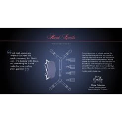 Adjustable to fit single, double, kingsize and super-kingsize beds and easy to fold down to a portable size for storage and easy travel, this set is ideal for couples to whom discretion is key. The strap system measures 49 inches in length with two widths for the cuffs to attach, each measuring 98 inches across. 4 straps protrude from beneath your mattress, exposing 4 O-rings to which the cuffs connect, forming your bondage restraint. Part of the Fifty Shades of Grey The Official Pleasure Collection approved by author E L James. Supplied with a Fifty Shades of Grey storage bag, this bed restraint kit is the ideal erotic gift for fans of the trilogy.