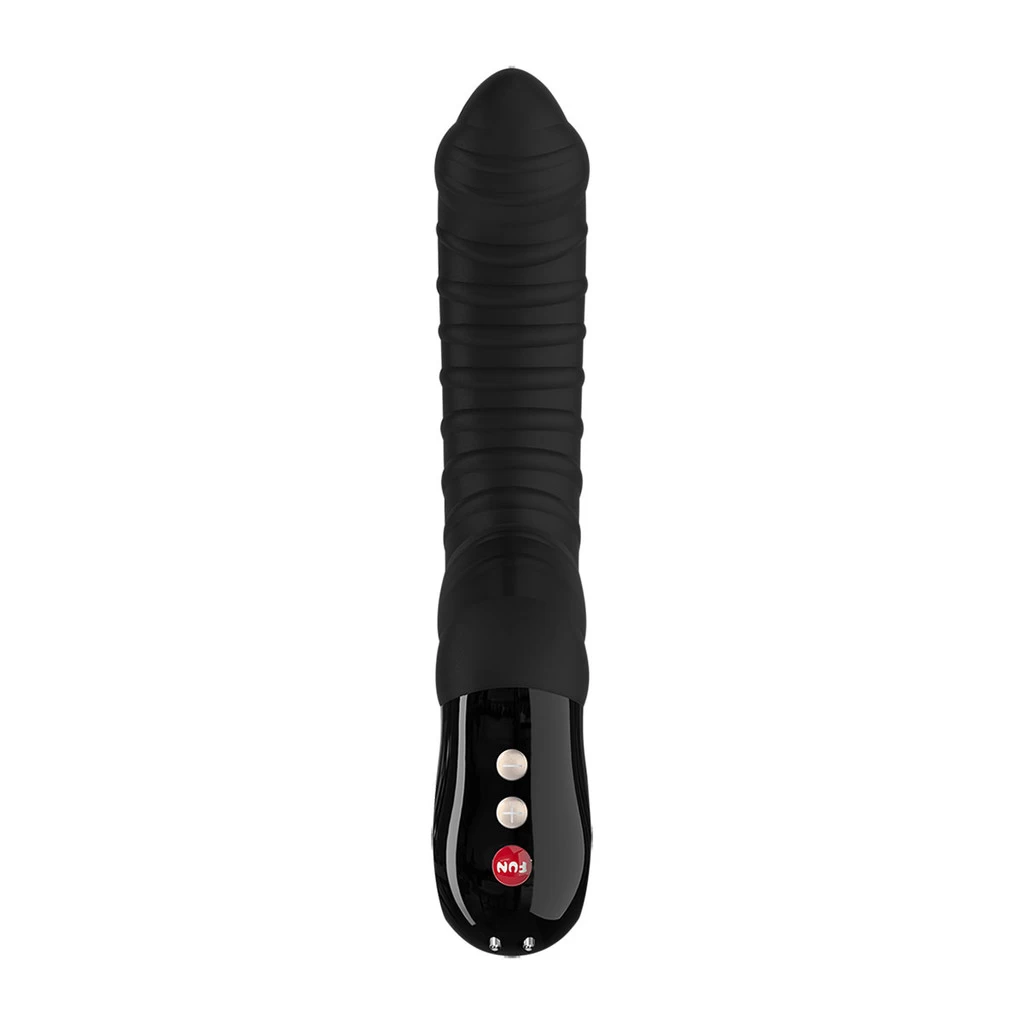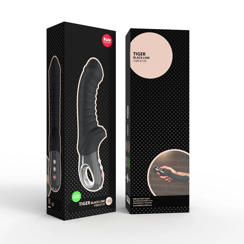 The Tiger is a real cuddle tomcat no woman can refuse. The prominent ridging and the bent tip really intensely massage the G-spot. The booster guarantees additional power, allowing the Tiger to purr in top form. Connoisseurs will love this big guy’s wavy profile, because each ridge delivers unexpected intense stimulation upon insertion. G5 technology provides up to twice the power of the G4 model with greater vibration provided throughout the shaft, not the handle. Also includes FlexiFUN technology, which means extremely flexible 100% medical-grade silicone all the way to the core plus a key lock for worry-free travel and a battery level indicator so users will never be surprised by a delay in play!