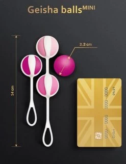 Our Geisha Balls Mini starter kit contains 4 balls of different weights – from 15 g to 35 g, and two silicone strings – for one ball and for two. The light weight and reduced ball diameter are perfect for beginners.