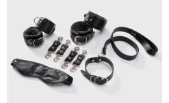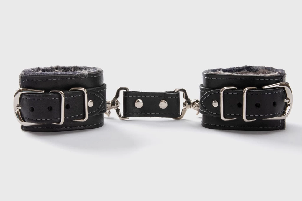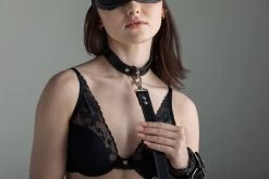 Wrists bound. Thighs spread. Ankles locked into place. With a few clips, you’ve forged a sensual new universe. Stretchy elastic secures the luxe faux fur-lined lambskin blindfold, heightening sensory play. Comfy cuffs are lavishly lined in the same plush faux fox fur and fasten into place with nickel-plated buckles for a snug fit. Lead your lover into submission with the supple leather collar and lead. Connector clips work with Liberator Shapes and Black Label products for expanded restraint options. The Harlowe Premium Cuff Kit includes everything you need to tie down and tease a rebellious lover.