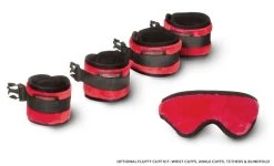 - Customize with choice of adjustable velcro wrist cuffs, tethers, and blindfold (sold separately).