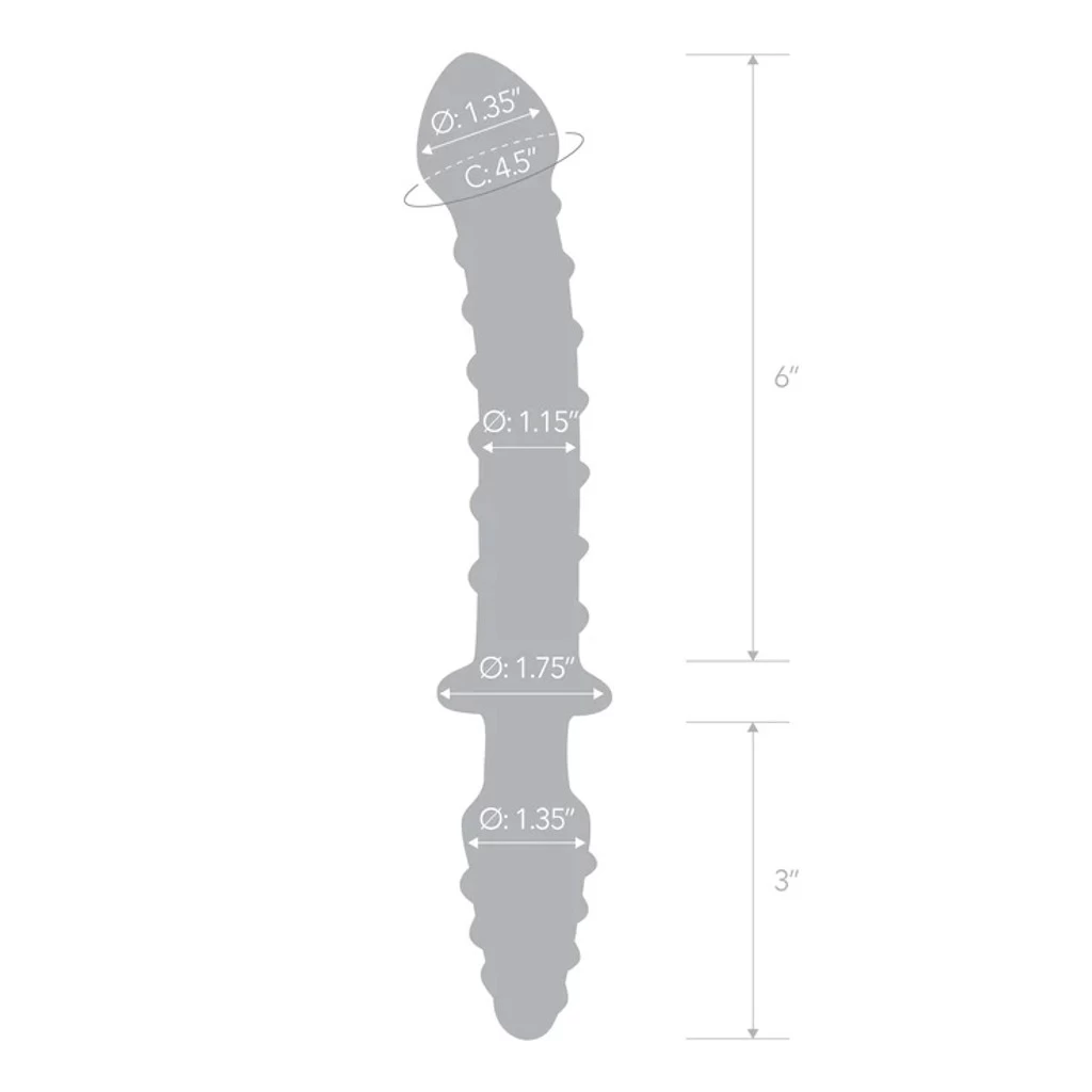 Extra long, extra firm and subtly curved into some super-textured sturdiness that warms to body heat in a flash (and things will heat up fast when you pull gläs’s Mr. Swirly out of the drawer/toy chest!), this gorgeous double sided dildo in swirly blue accented glass is as versatile as it is ridiculously pleasurable.