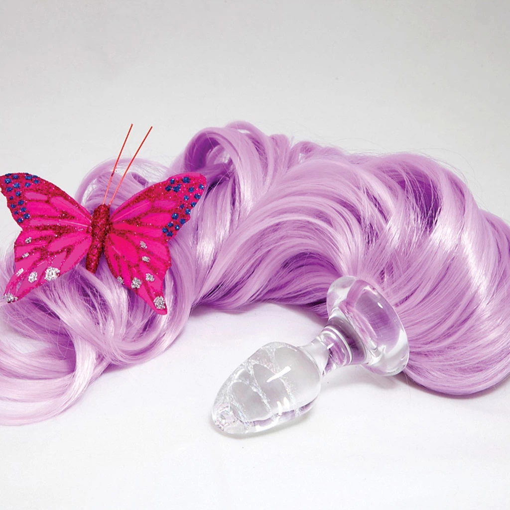 Crystal Delights brings us this whimsical handcrafted anal plug with a colorful pony tail attached to the base. This curly, flowing ponytail anal plug is made of the highest quality, properly hardened borosilicate glass. The smooth plug tip eases insertion for unmatched comfort in anal play with a slender stem leading to a flared base, ensuring the plug is safe, comfortable and enjoyable. Who can resist the temptation of this colorful pony tail adding visual enticement to any role-playing scenario, stimulating sensory plan, or just for that wilder side?
