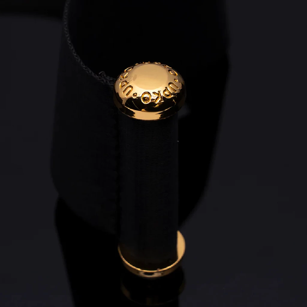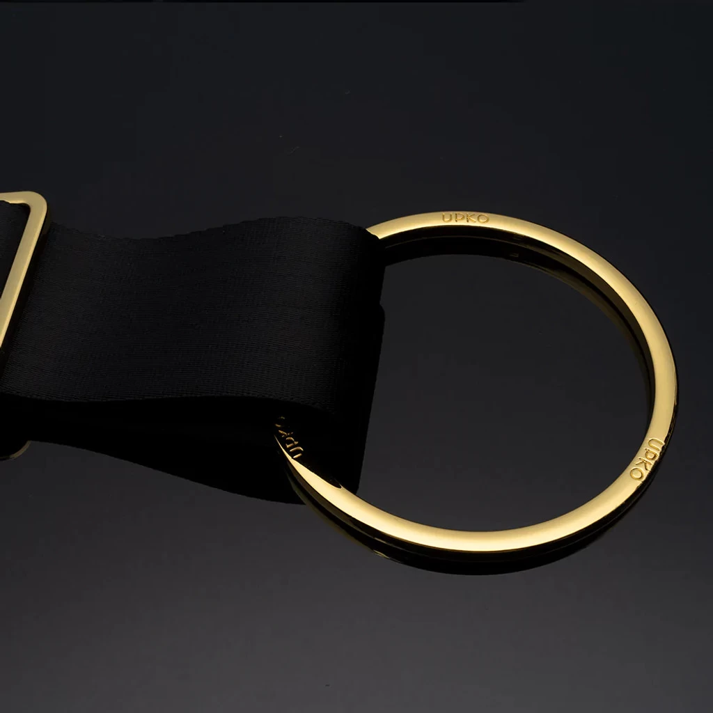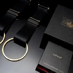 BDSM restraint straps are made from high quality alloy and ripstop nylon. Strong and resistant, black and gold, these bondage straps are easy to use and can be quickly stored in their carrying bag (included).