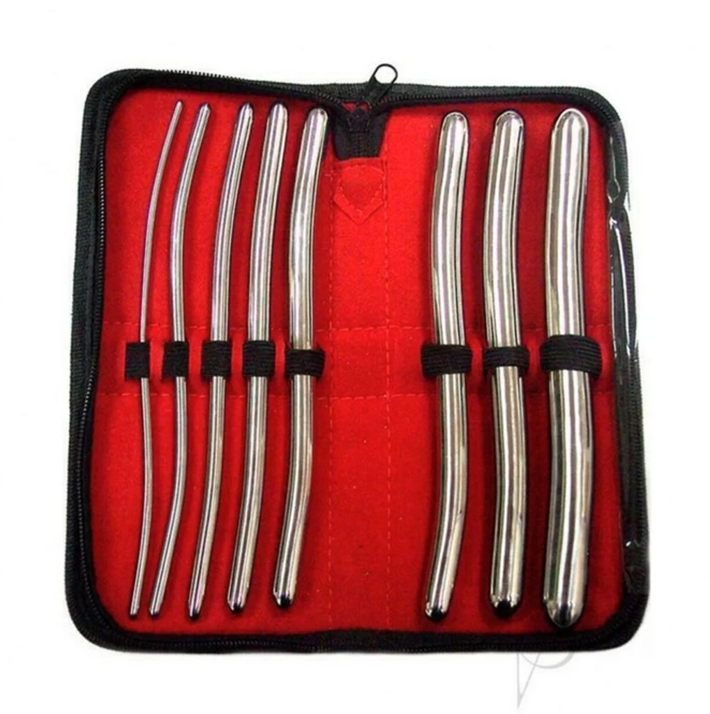The Rouge Stainless Steel Hegar Urethral Sounding Kit is an urethral dilator sound set with a full set of 8 sounds. Sounds are medical instruments designed for insertion into the urethra, the tube connecting the bladder with the outside world.