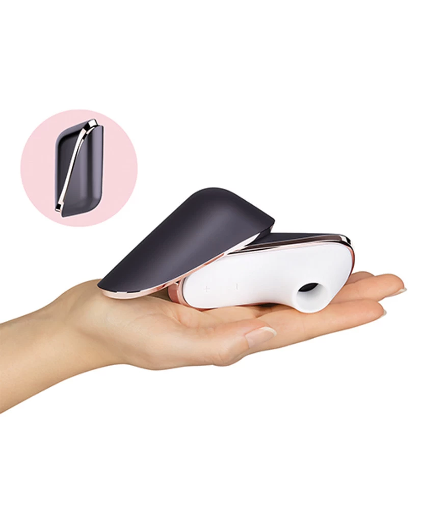 The Traveler, both chic and portable, features our proprietary Air-Pulse Technology, making you weak in the knees. Whisper-quiet and topped with a magnetic cap, this tender gem is great for “grab and go” moments and secret rendezvous. Whether you’re a frequent flyer or prefer road trips, the stylish cap magnetically seals your Satisfyer when you travel, making it a discreet and hygienic accessory. With 11 programs, this handy pressure wave vibrator will get your blood pumping. And thanks to the waterproof design, you can even enjoy pulsating orgasms even in your hotel bathtub. The integrated rechargeable batteries are easy to charge via a magnetic USB charging cable so it’s always ready for your next exciting trip.