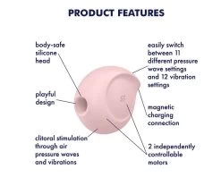 A playful waterdrop-shape design and the ultimate combo of pressure waves and vibration make the Satisfyer Sugar Rush ideal for newbies. The two motors can be controlled separately: 11 pressure wave and 12 vibration programs deliver countless possible combinations to satisfy your cravings. Thanks to its compact shape, you have everything under control during play. What’s more, you can also transport the pressure wave vibrator discreetly and easily on the go – it’s the perfect travel companion!