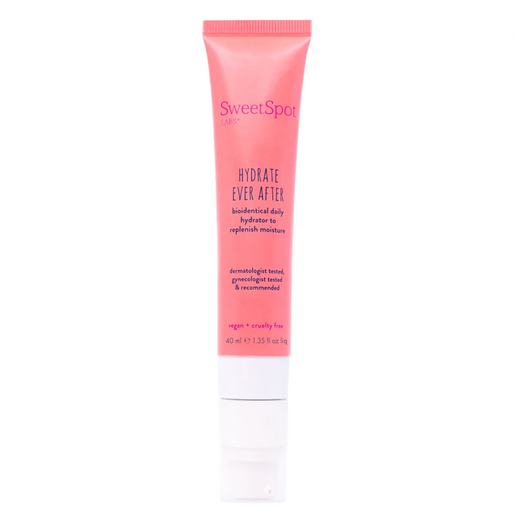Sweet Spot used thoughtfully selected clean, bio-identical skin hydrators to nourish and soothe the sensitive labia and surrounding skin. Three bio-identical emollient oils: squalene, jojoba and macadamia seed, mimic the ceramide, cholesterol, and fatty acid structure of skin’s vital natural lipids to help refill and restore those lipids. Sodium hyaluronate deeply hydrates and holds vital moisture in the skin. This smooth, non-sticky serum nourishes intimate skin with skin-similar, non-toxic, and non-irritating ingredients. Hydrate Ever After is pH-balanced, clean, lightweight and safely hydrating. That’s happiness ever after!