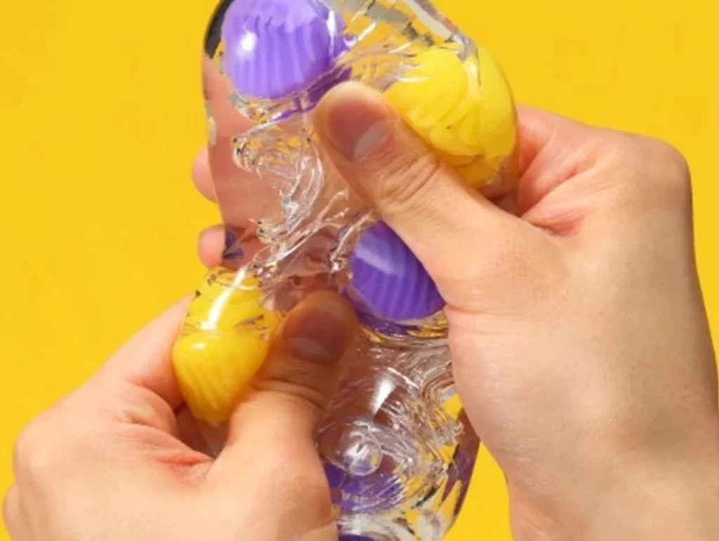By adjusting the firmness of the grip while stroking, users can fully experience the contrasting stimulation from the soft material and elastic pieces, together in one item.