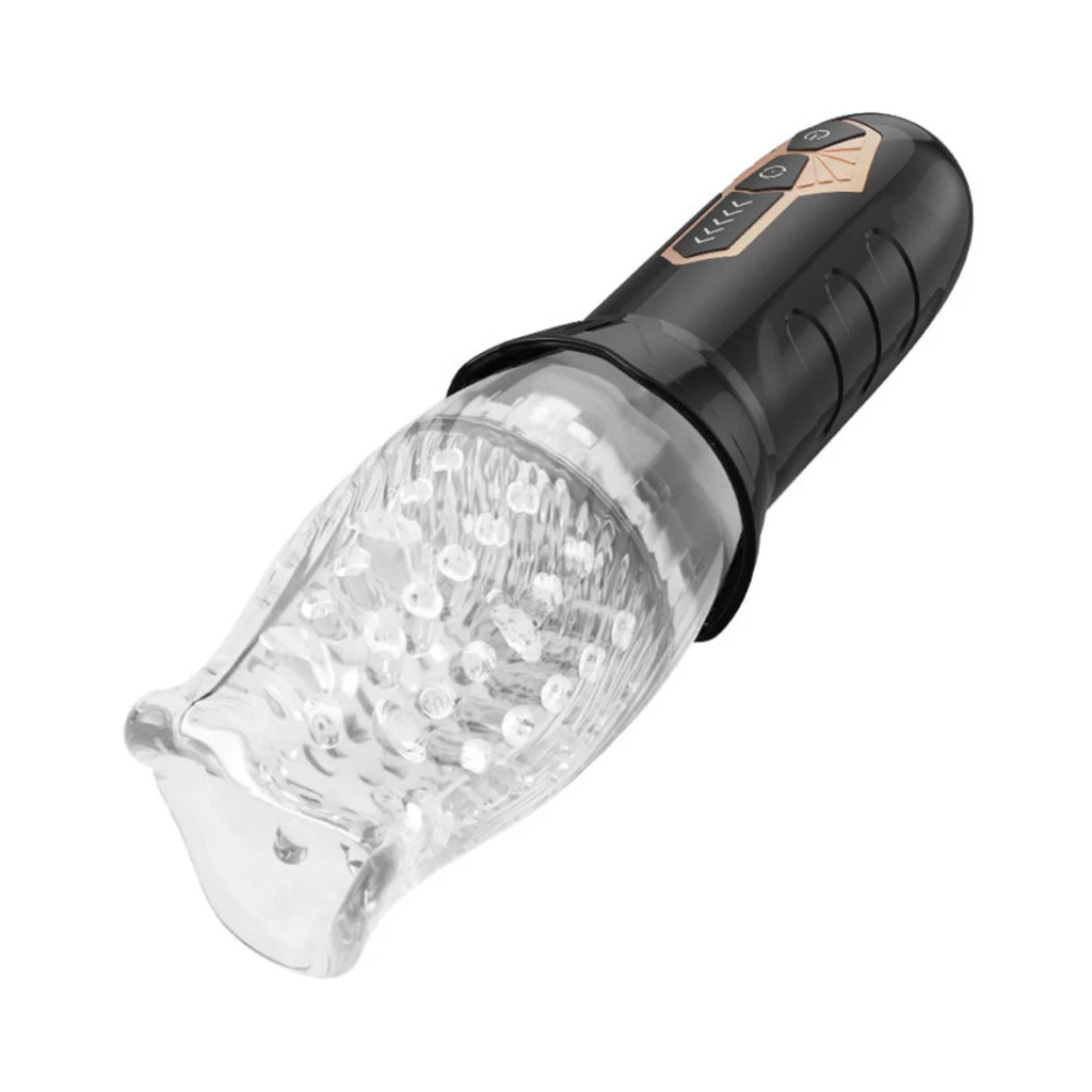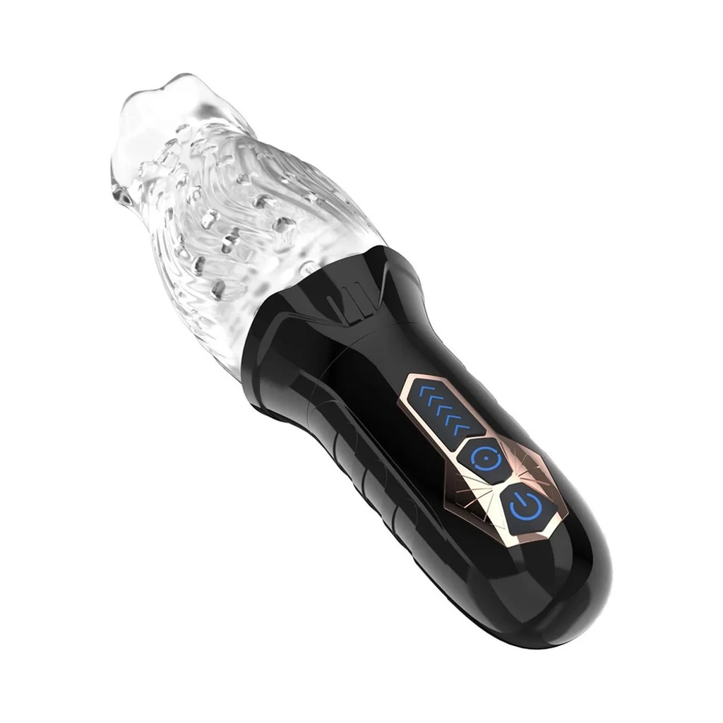 Experience new and exciting sensations with the strong multi-frequency rotation mode. The supple masturbator cup is shaped like a mouth to help simulate mind-blowing oral sex – it’s like being sucked into an erotic tornado!