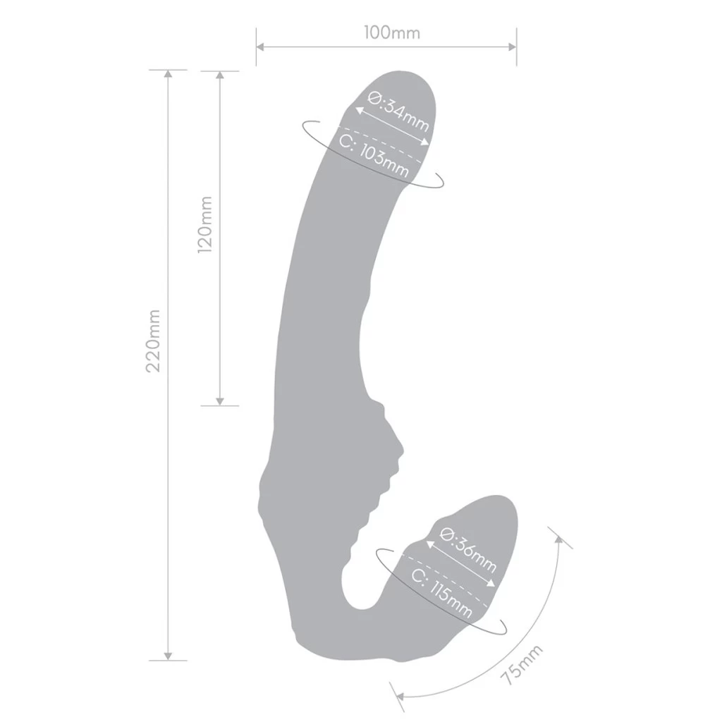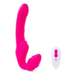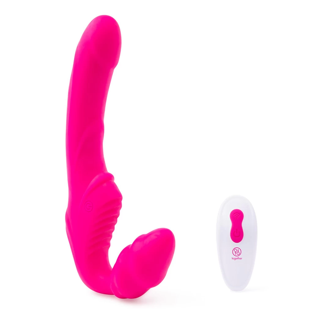 The Strapless Together remote-controlled strap-on vibrator is made of silky soft, body-safe silicone with a flexible shaft that offers the perfect reach for pleasing a partner with deep targeted stimulation. You can use it in a variety of positions to target the G-spot or P-Spot of the partner on the receiving end, while the vulva-owning wearer enjoys internal stimulation with a smaller ribbed shaft for intense grinding and thrusting. This device is the ultimate couples’ vibrator that can conveniently be controlled with its remote. With whisper-quiet vibration and nine modes of power to choose from, it’s perfect for all levels of experience.
