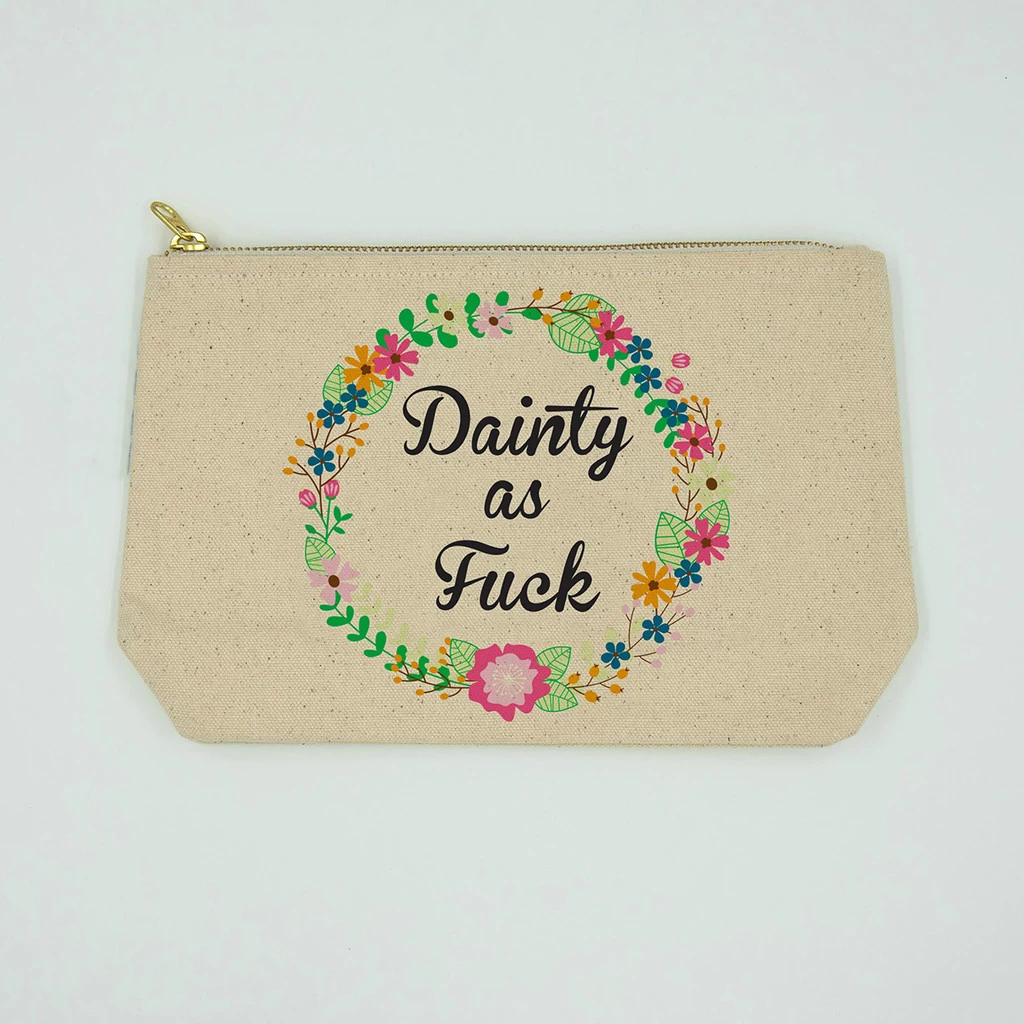 With the finest materials and printing techniques, you combine that with a bold, adult humorous message the result is a unique gift and personal item. A witty canvas travel bag is a great gift for family and friends for any occasion including travel gift, birthday gift, bridal shower, bridesmaid gift, bachelorette party, Mother’s Day, divorce gift, Christmas and other milestone events. Bitch bags are fun and sassy but the core of our product is of quality fabric and lasting durability. This cosmetic bag is made of hearty cotton canvas to survive daily use and is fully vinyl lined for wiping clean, because, sometimes things get messy. The large hand sized 10.5”X 7.5” zipper bag is great for holding makeup, cosmetic brushes, travel goods, electronics, writing utensils, personal belongings and more. Sized to fit easily in any purse or tote but large enough to carry alone. The gusseted bottom of the zipper pouch stretches the bag 3 inches to give you extra room for even more stuff. The double stitched premium zipper is made to hold shut tight and open without snagging or coming off track.Â