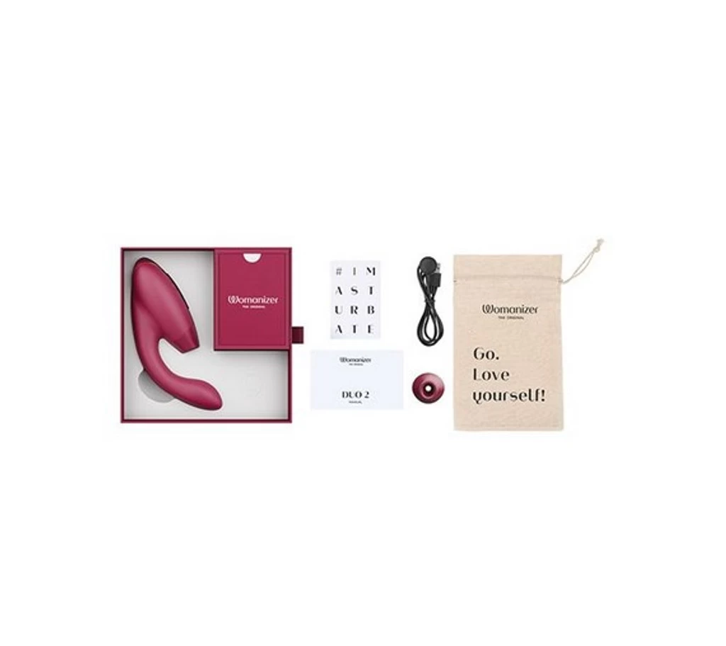 DUO 2 is a unique premium rabbit toy – a Pleasure Air clitoral stimulator and powerful G-Spot vibrator combined to create advanced, blended orgasms. Pleasure Air surrounds the clitoris with pulsating waves and gentle suction leading to a new kind of extraordinary orgasm. Dual Stimulation – DUO 2 simultaneously targets the G-spot with deep rumbly vibrations and the clitoris with suction-like Pleasure Air stimulation, creating satisfying blended orgasms. The flexible inner arm is curved upwards to target the G-spot with gentle vibrations. DUO 2 is waterproof (IPX7), making it easy to clean and enjoy anywhere outside of the bedroom. Find your rhythm with 10 different vibration patterns — from the wave to the cha-cha or just pure steady vibrations. 14-Intensity Levels – Now with an additional two intensity levels, DUO 2 can offer the right setting for every mood. Afterglow – By briefly pressing the power button, DUO 2 will quickly revert to a lower setting for a relaxing end to an orgasm. Smart Silence – DUO 2 automatically turns off when not in contact with skin.